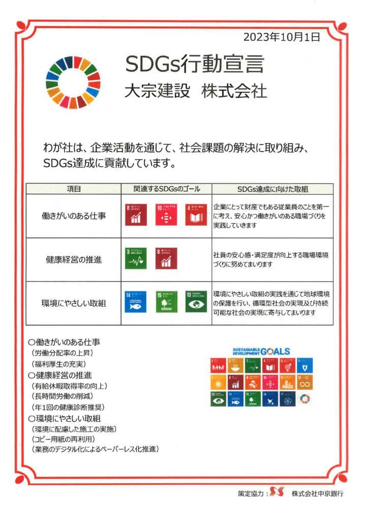 大宗建設株式会社は、「優先されるべきは、お客様の利益」をモットーに、土木・建築・不動産を事業としている会社です。
