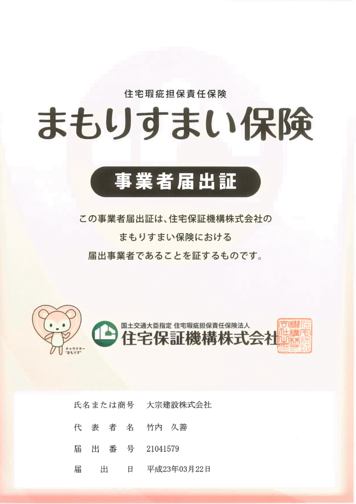 当社は、住宅保証機構株式会社の「まもりすまい保険」に加入しています。
